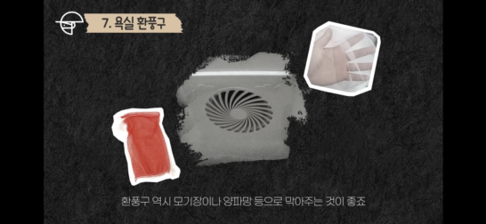 욕실 배수구를 꼼꼼하게 막았다면 환풍구 역시 모기장이나 양파망 등으로 막아주는 것이 좋습니다.이제 곧 장마가 지나가고 나면 무더운 폭염과 함께 모기와의 전쟁이 시작될 텐데요, 철저히 대비하셔서 모기 없이 조용하고 쾌적한 잠자리에서 잠드는 여름밤 되시길 바라겠습니다.